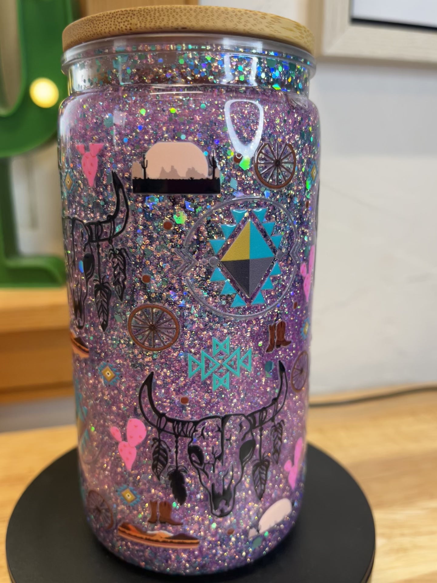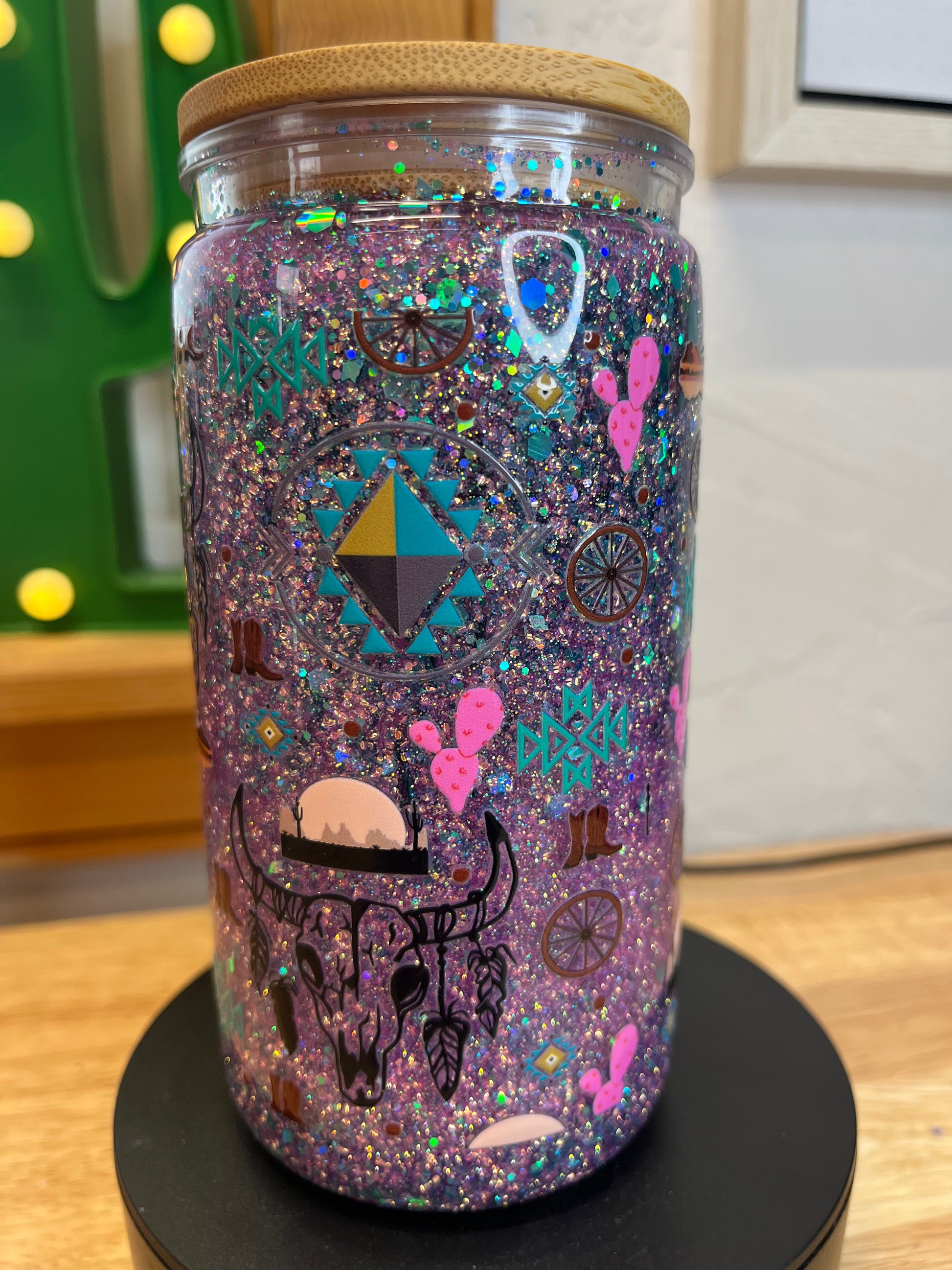 Saddle up your sipping game with this Acrylic Western Snow Globe Tumbler. Featuring a double-wall design filled with glittery snow globe magic, this tumbler turns every drink into a show. The Western-inspired design—think boots, hats, cacti, and country charm—adds bold attitude to your beverage routine.