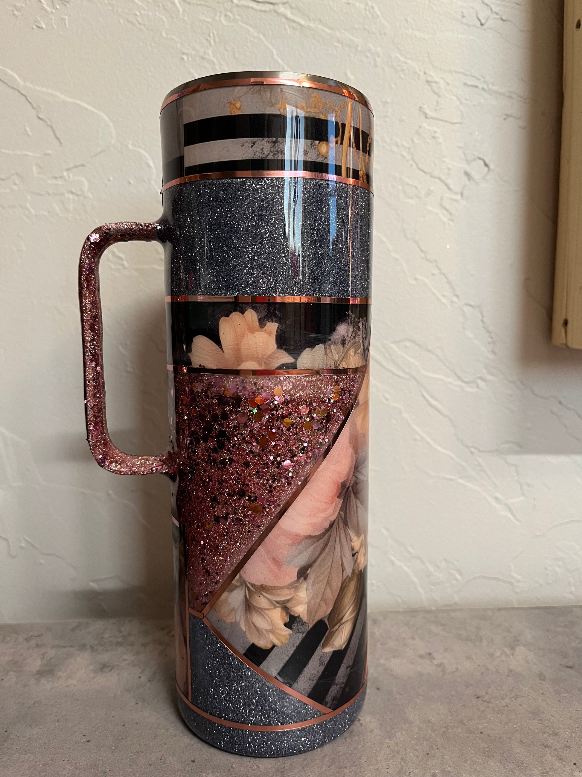 Saddle up with style! Our 30 oz Hoggdle Classic Rose Tumbler is made for long days on the ranch, rodeo runs, or wild road trips. With its built-in handle and slim design, this tumbler is the perfect partner for your favorite brew—whether it's hot coffee at sun-up or ice-cold sweet tea under the stars.