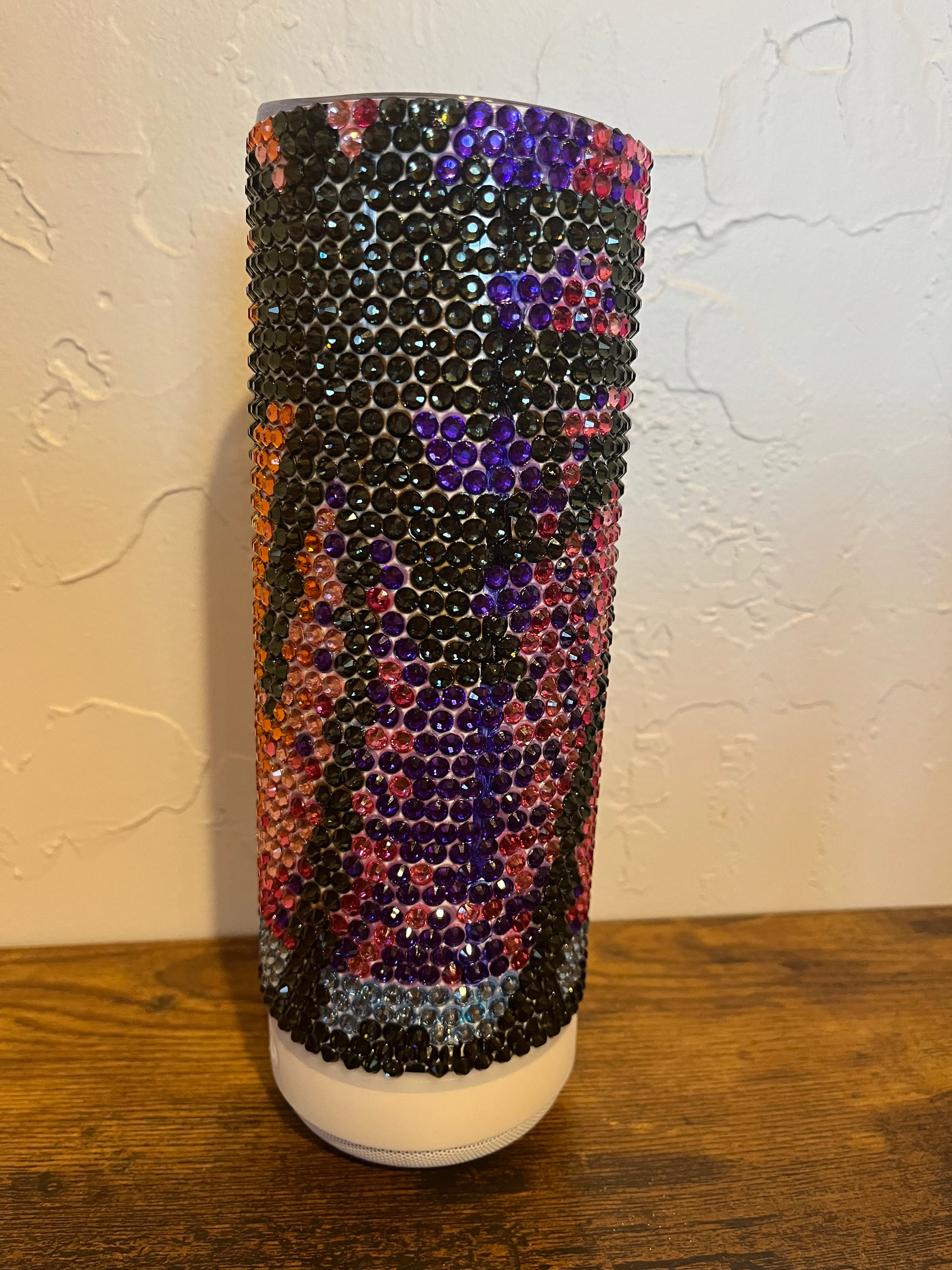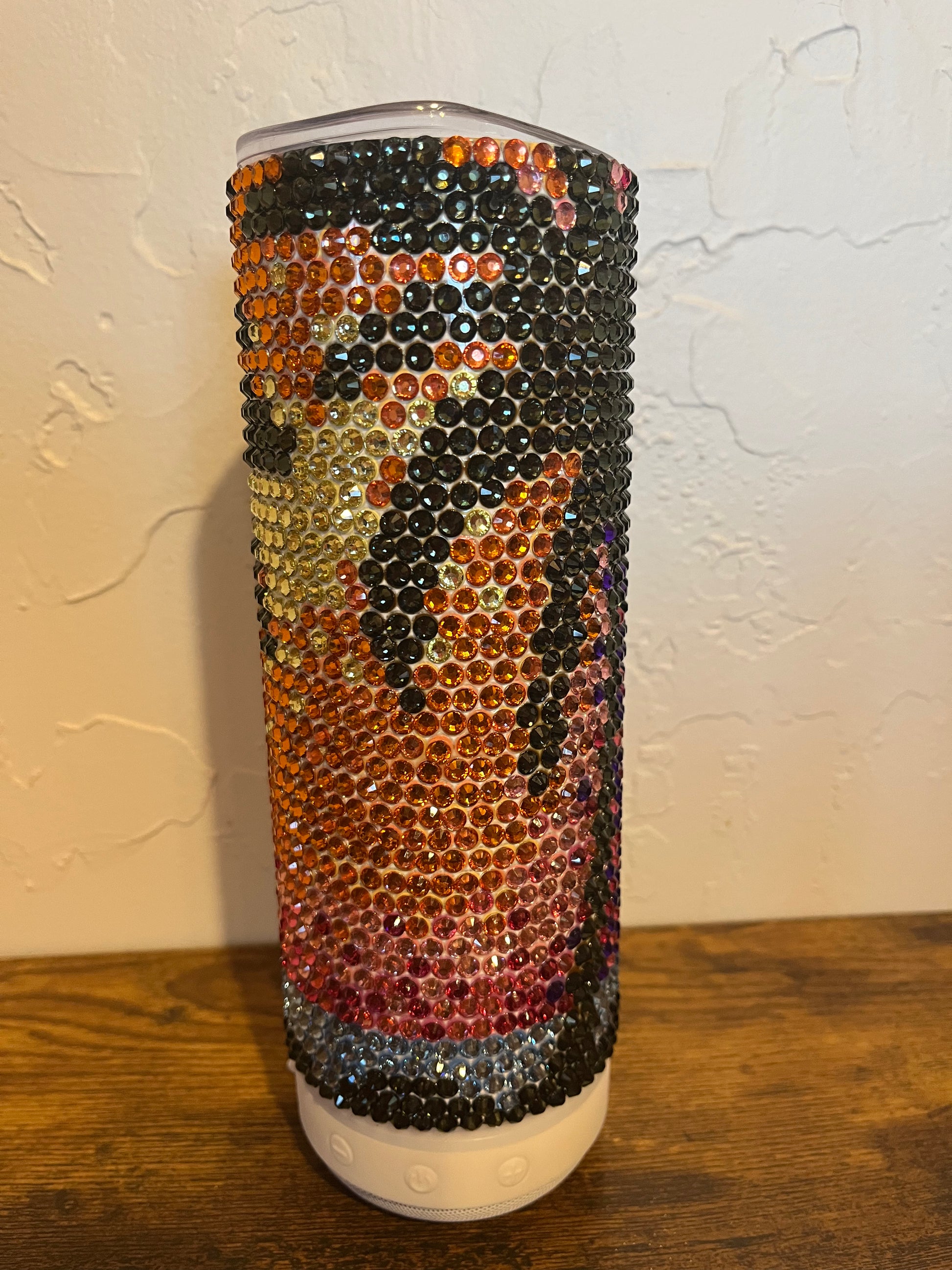 What sets this tumbler apart is its built-in Bluetooth speaker, allowing you to enjoy your favorite tunes wherever you go. The easy-to-use controls let you connect your device and start the party, whether you're at the beach, a picnic, or just lounging at home. The tumbler comes with a secure lid and a reusable straw for easy sipping and to minimize spills. Combining fun and functionality, the Palm Tree Rhinestone Speaker Tumbler is the perfect companion for those who love to have a good time while staying stylishly hydrated.